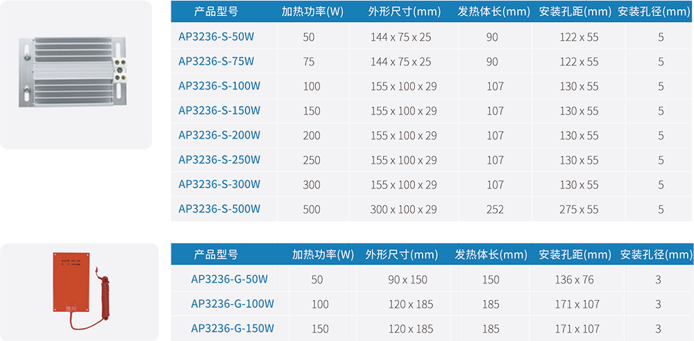 加热器选型一览表